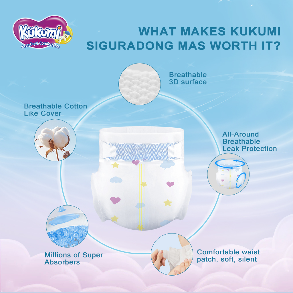 Kukumi is a baby diaper brand based in the Philippines, with a clear focus on providing reliable, high-quality disposable diapers for infants and toddlers. According to its official website (https://kukumi.ph/), Kukumi positions itself as a brand that prioritizes baby comfort, safety, and consistent quality control throughout the manufacturing process.
