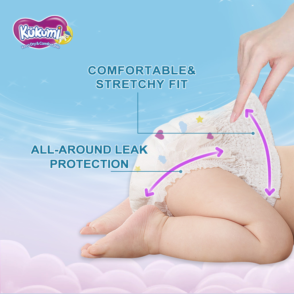 Kukumi also offers pull-up diaper pants, designed for older babies and toddlers. These diapers are worn like underwear, making them especially convenient for active babies who dislike lying still during diaper changes.